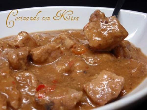 Carne de cerdo en salsa al oporto (fussioncook) PlatoFácil45 min Enviar esta receta a un amigo Imprimir esta página Preguntar al autor Publicar la foto de esta receta Ingredientes 4 1 kg de carne de cerdo para guisar 1 pastilla de caldo de carne 1 calabacín 2 zanahorias 1 pimiento rojo ½ vaso medidor de vino Oporto 75 g de champiñones Sal Pimienta negra 2 cucharadas de Harina Aceite hasta la mitad de la marca 40 del vaso medidor