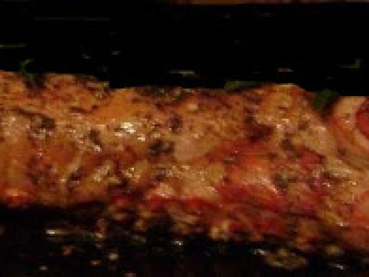 Carré de cerdo asado al modo argentino PlatoFácil50 min Enviar esta receta a un amigo Imprimir esta página Preguntar al autor Publicar la foto de esta receta Ingredientes 8 1 trozo de carré de cerdo deshuesado de 1 kg y medio 40 g de ciruelas pasas sin hueso 40 g de nueces peladas sal ají molido dulce o pimentón 500 g de espinacas 2 cebollas 8 pimientos del piquillo nuez moscada pimienta sal aceite de oliva caldo de verduras vaso de Jerez