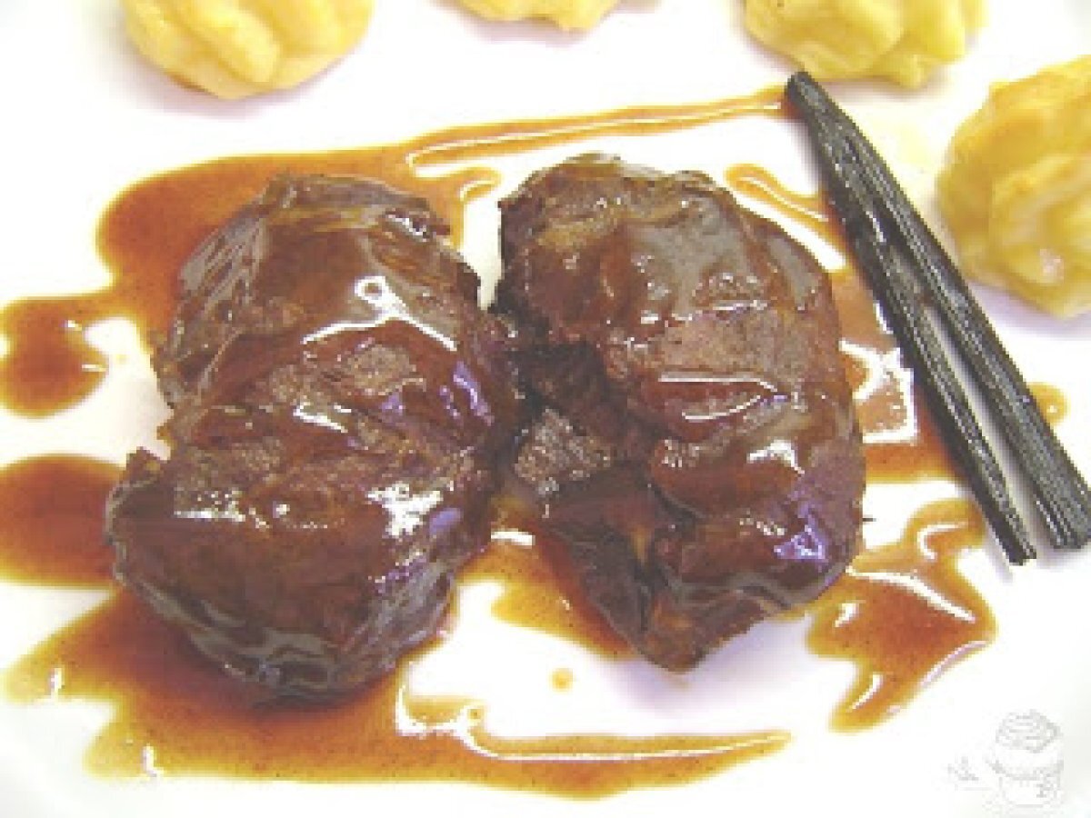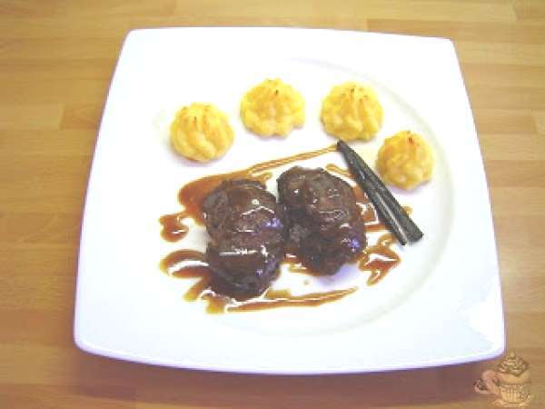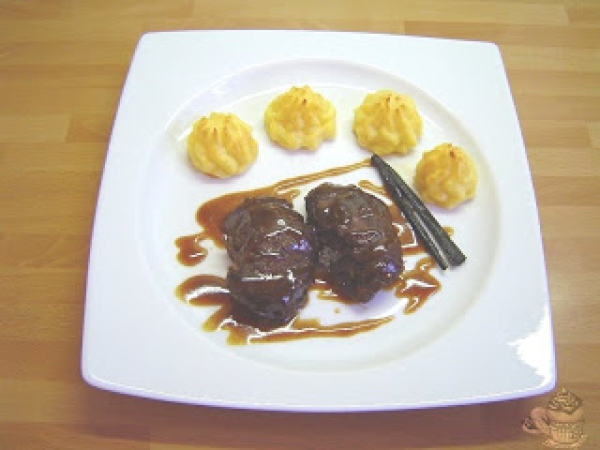 Carrilleras con salsa de vainilla AnteriorSiguiente PlatoMedio45 min Enviar esta receta a un amigo Imprimir esta página Preguntar al autor Publicar la foto de esta receta Un suculento plato a base de carne que podrá rehacer en ustedes. Ingredientes 4 6 carrilleras 3 cebollas grandes 6 dientes de ajo 200 ml vino oloroso de Jerez ½ rama de vainilla 1 cuchara a té de las de café de pimienta negra en grano 10 cucharas a té de aceite de oliva virgen extra sal