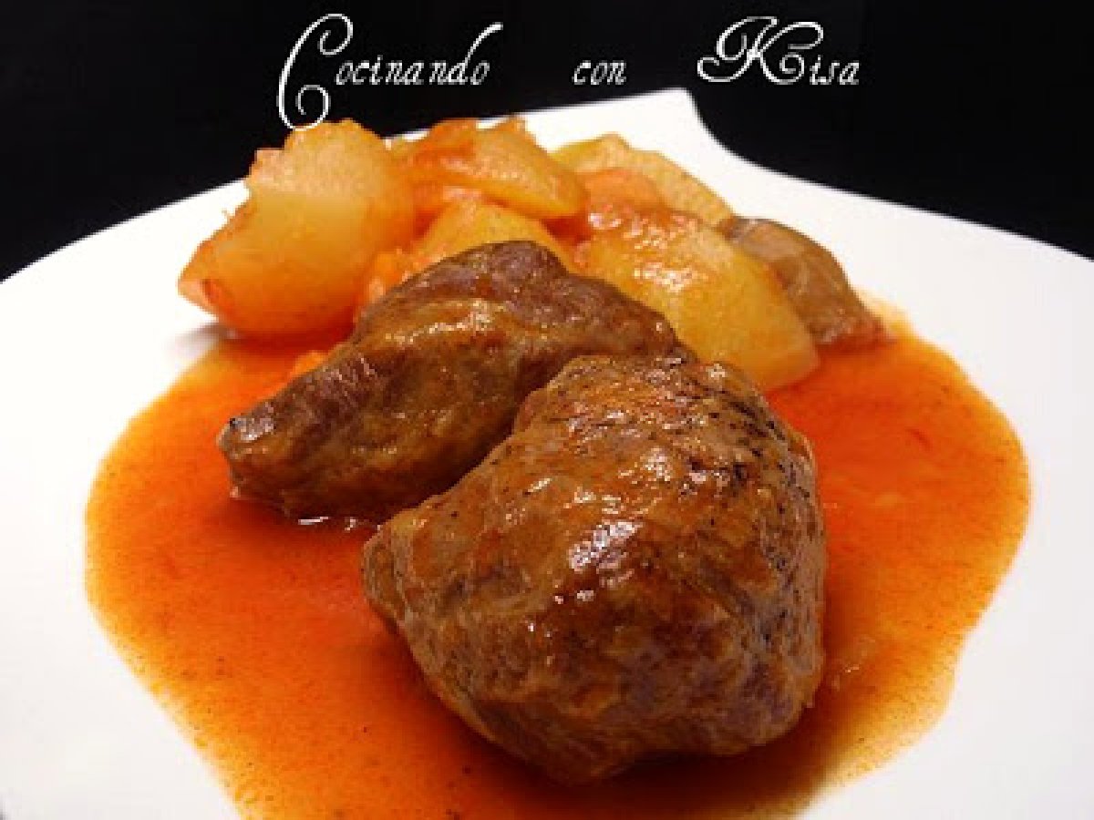 Carrilleras en salsa con patatas( fussioncook) PlatoFácil45 min Enviar esta receta a un amigo Imprimir esta página Preguntar al autor Publicar la foto de esta receta Ingredientes 2 500 g de carrilleras 4 dientes de ajo con piel ½ cebolla 3 zanahorias 1 medidor de tomate natural triturado Agua hasta la marca 40 del vaso medidor Nuez moscada Pimienta negra ½ cucharadita de pimentón dulce Unas hebras de azafrán Sal aceite hasta la mitad de la marca 40 del vaso medidor 3 patatas Harina