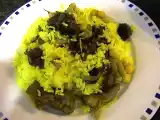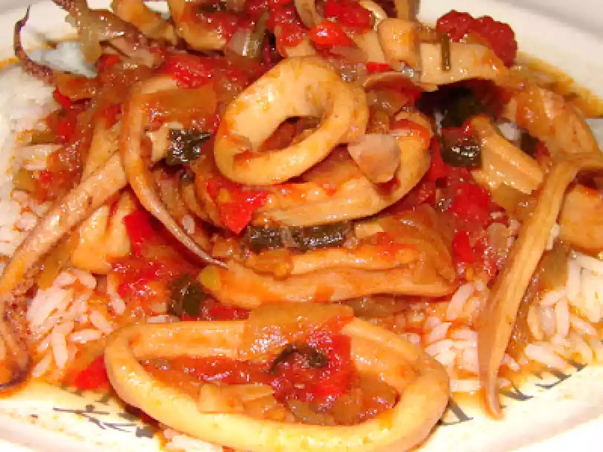 Cazuela de calamares con arroz AnteriorSiguiente PlatoFácil40 min407 Kcal Enviar esta receta a un amigo Imprimir esta página Preguntar al autor Publicar la foto de esta receta Ingredientes 6 1,5 kg de calamares frescos enteros 1 cebolla picada 2 cebollitas de verdeo picadas 1 diente de ajo picado 1 pimiento rojo picado ½ taza de vino blanco sauvignon blanc 2 latas de tomates perita al natural 2 hojas de laurel Sal Pimienta 1 cdta. de azúcar 4 pocillos de arroz común Costo estimado: 22.98Euros€ (3.83€/porción)
