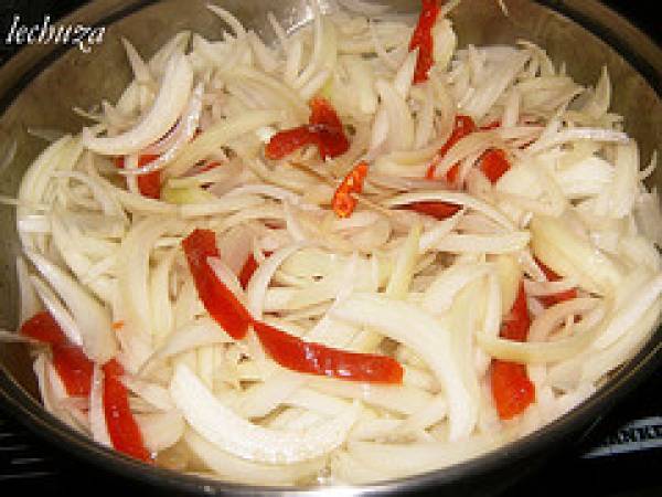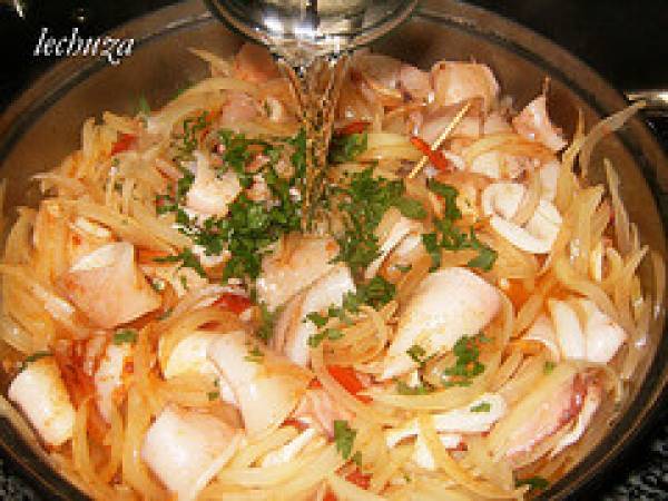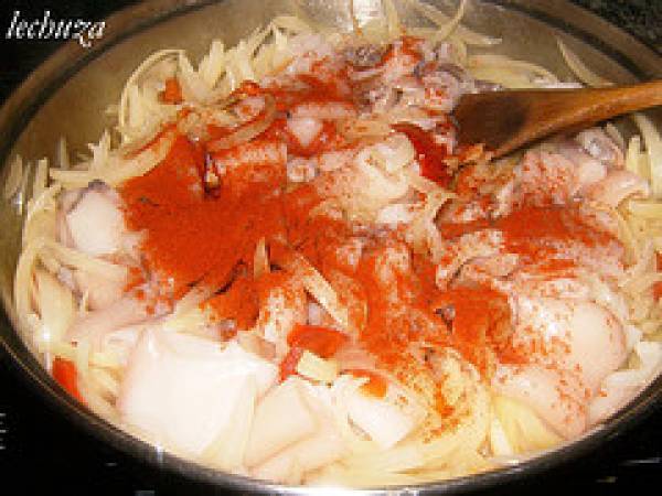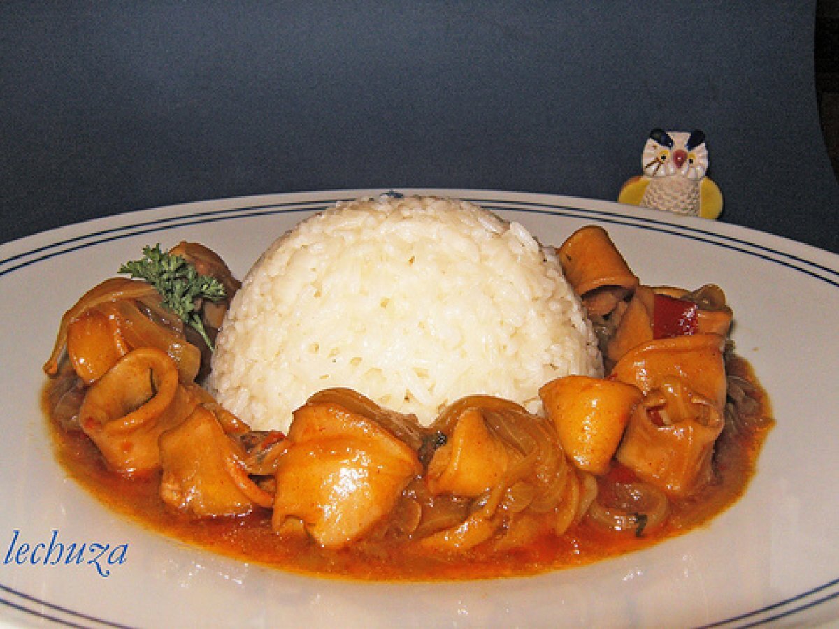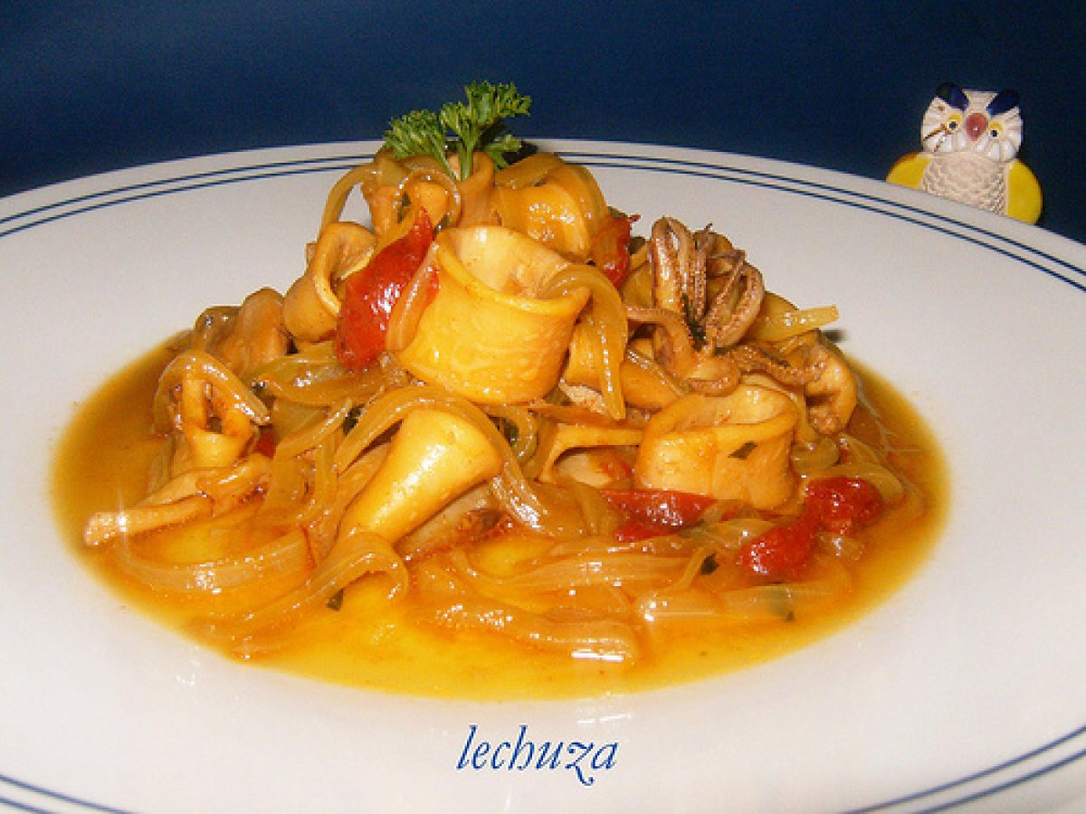 Chipirones encebollados (con paso a paso de cómo limpiar los chipirones) AnteriorSiguiente PlatoMedio30 min Enviar esta receta a un amigo Imprimir esta página Preguntar al autor Publicar la foto de esta receta Es un plato muy delicioso y con sabores bien concentrados. Ingredientes 3 1 kg de chipirón (calamares pequeños) 3 cebollas 1/2 pimiento rojo 2 dientes de ajo 1 cucharadita de pimentón dulce 1 guindilla pinchada en un palillo 1 vasito de vino blanco sal y perejil *acompañamiento: un arroz blanco