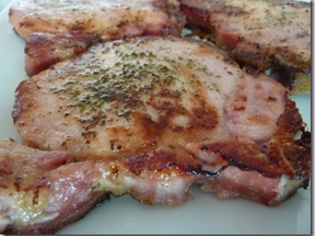 Chuletas al perejil AnteriorSiguiente PlatoMedio55 min190 Kcal Enviar esta receta a un amigo Imprimir esta página Preguntar al autor Publicar la foto de esta receta Ingredientes 2 Filetes de Chuleta ahumada sal y pimienta al gusto Perejil fresco 1 diente de ajo machacado 2 cucharada de aceite de oliva Costo estimado: 1.51Euros€ (0.76€/porción)
