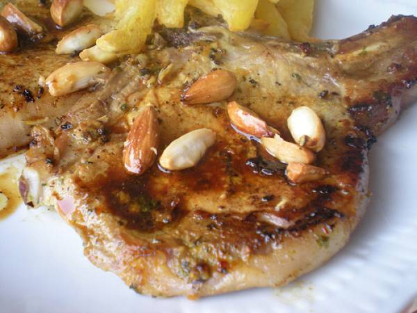 Chuletas de cerdo con almendras
