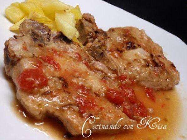 Chuletas de cerdo en salsa a la sidra (fussioncook) PlatoFácil1 hora Enviar esta receta a un amigo Imprimir esta página Preguntar al autor Publicar la foto de esta receta Ingredientes 4 4 chuletas de aguja 25 g de mantequilla 100 ml de tomate natural troceado El zumo de 1 limón 1 cebolleta Sal Pimienta blanca Sidra hasta la marca 40 del vaso medidor Harina para rebozar las chuletas