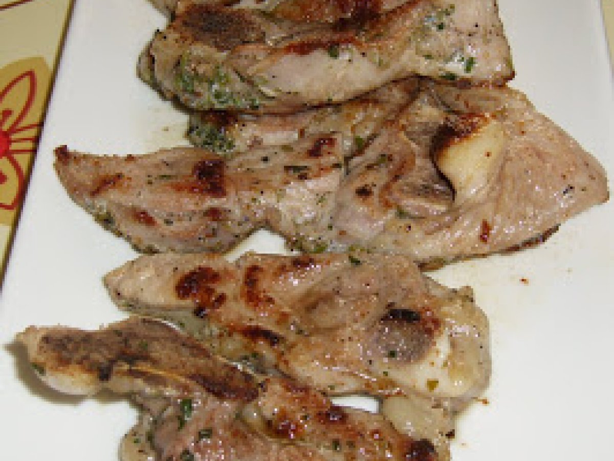 Chuletas de pavo aliñadas PlatoMedio50 min Enviar esta receta a un amigo Imprimir esta página Preguntar al autor Publicar la foto de esta receta Ingredientes 5 Chuletas de pavo Ajo Sal Perejil Aceite