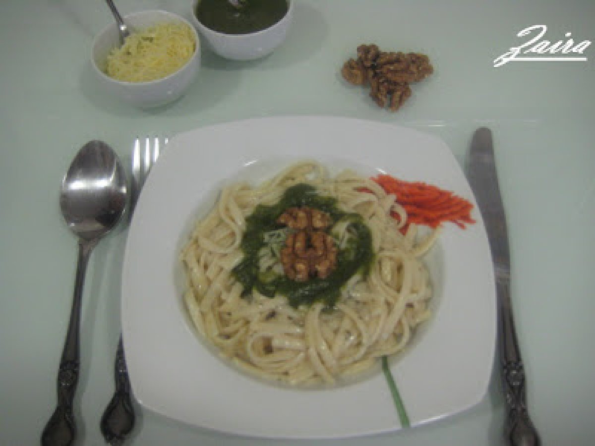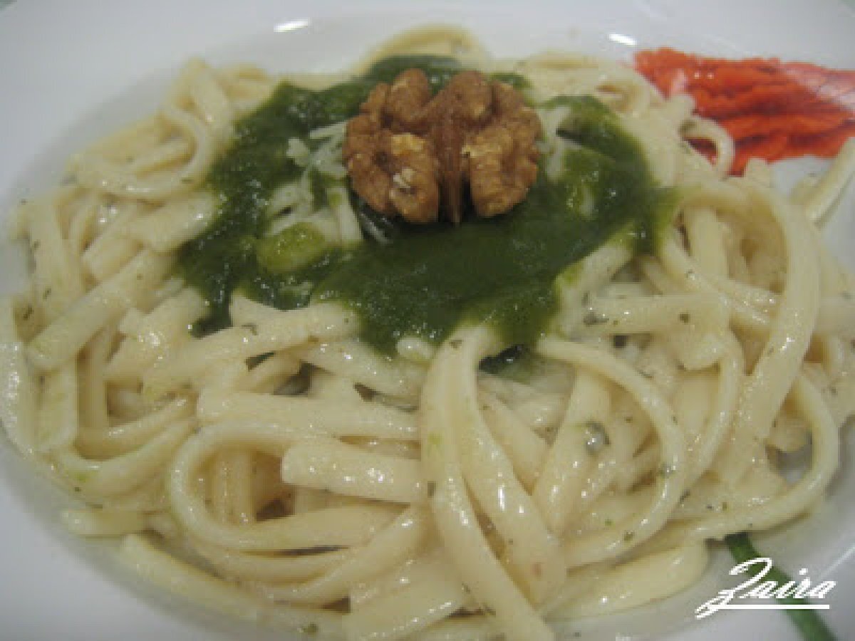 Cintas al huevo con pesto de nueces y queso sbrinz