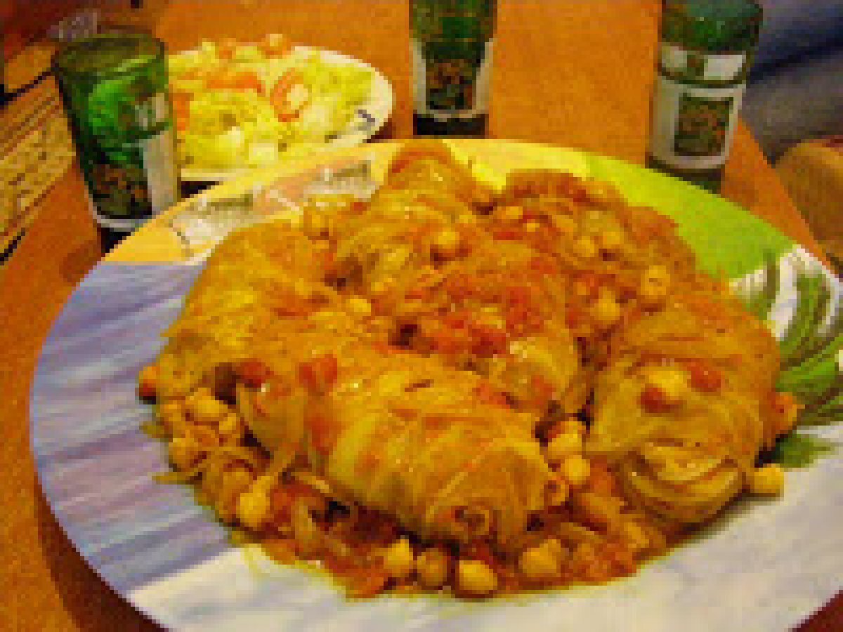 Col rellena - dolma de col PlatoMedio35 min Enviar esta receta a un amigo Imprimir esta página Preguntar al autor Publicar la foto de esta receta Ingredientes 4 1 col (probablemente no la useis entera, unas 8 hojas) Para el relleno : 400 g de carne picada 1/2 taza de arroz Especias : azafrán, curry, cominos, cúrcuma, perejil, sal, pimienta negra Para la salsa : 2 cebollas, 3 dientes de ajo y 2 tomates Un puñado de garbanzos Aceite de oliva, agua o si tenéis caldo, mejor azúcar, sal, pimienta negra y azafrán