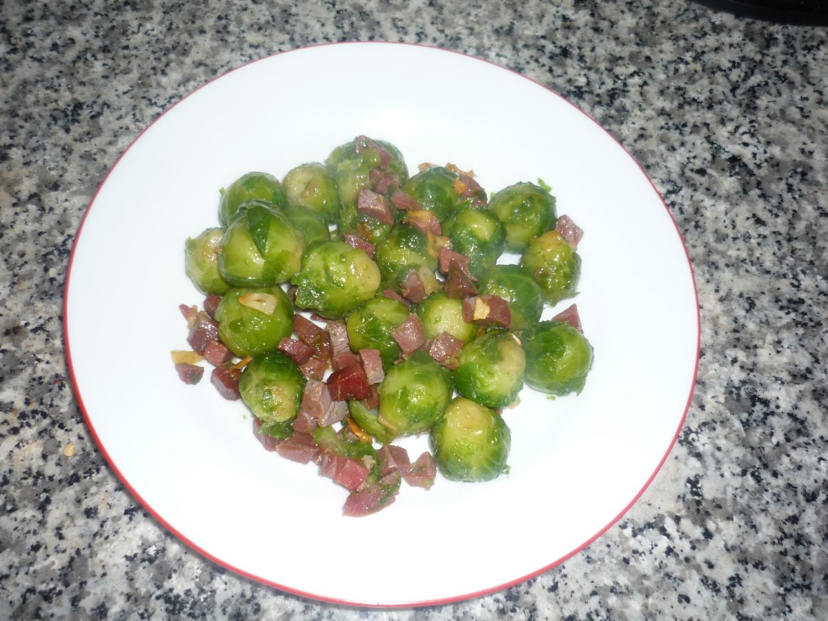 Coles de bruselas con jamón serrano PlatoFácil30 min185 Kcal Enviar esta receta a un amigo Imprimir esta página Preguntar al autor Publicar la foto de esta receta Ingredientes 3 1 Paquete de Coles de Bruselas. Taquitos de Jamón Serrano. 2 Dientes de Ajo. Aceite de Oliva. Sal. Agua. Costo estimado: 3.02Euros€ (1.01€/porción)