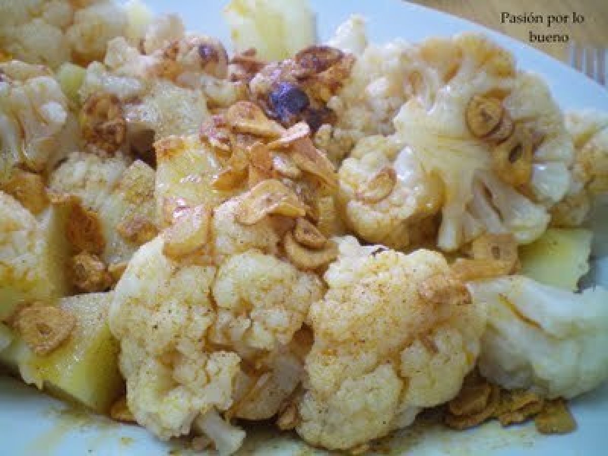 Coliflor al ajo arriero PlatoFácil30 min Enviar esta receta a un amigo Imprimir esta página Preguntar al autor Publicar la foto de esta receta Ingredientes 2 1 coliflor pequeña 4 patatas 5 ajos aceite, pimentón dulce y picante, sal y vinagre