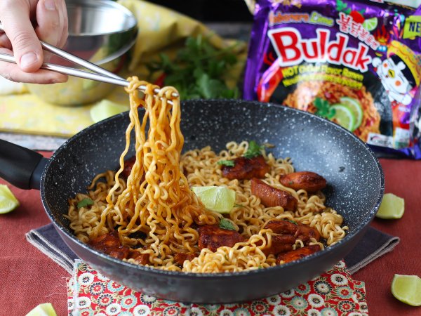 Los fideos Buldak son la tendencia picante del momento, ¡y no nos cansamos de probarlos! Después de probar los clásicos fideos carbonara y con queso, le damos paso a una nueva versión con lima y habanero que promete fuertes sensaciones. A los amantes del picante seguro que les encantan. Nosotros optamos por condimentarlos con pollo, lima y cilantro, pero las posibilidades son infinitas (huevo cocido, verduras, queso...).