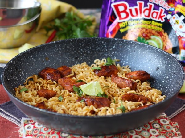 Cómo cocinar fideos buldak de lima y habanero, ¡receta con pollo marinado!
