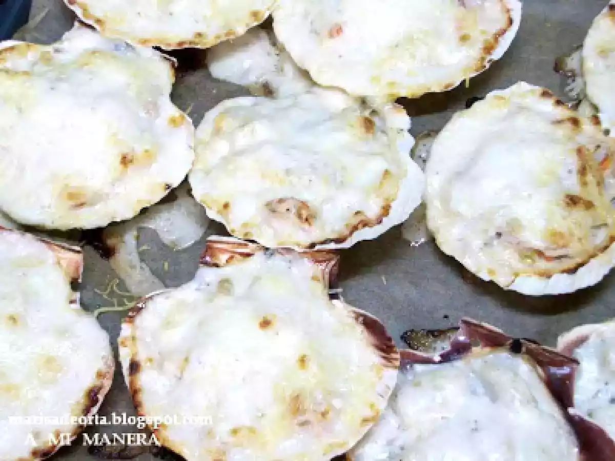 Conchas de marisco al cava AnteriorSiguiente PlatoFácil1 hora22522 Kcal Enviar esta receta a un amigo Imprimir esta página Preguntar al autor Publicar la foto de esta receta Una hermosa receta al gusto. Ingredientes 2 120 g de champiñones 120 g de cebolla picada 60 g de aceite 100 g de palitos de cangrejo 200 g de gambas peladas 1 filete grande de fletán Pimienta Sal 300 c.c. de cava 200 c.c. de nata 1 cucharada de maizena Queso rallado Pan rallado