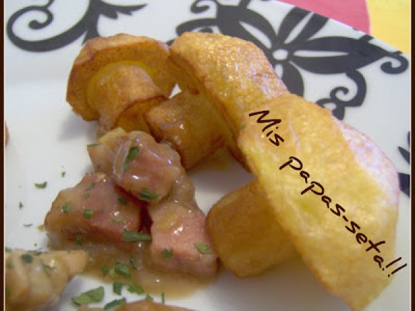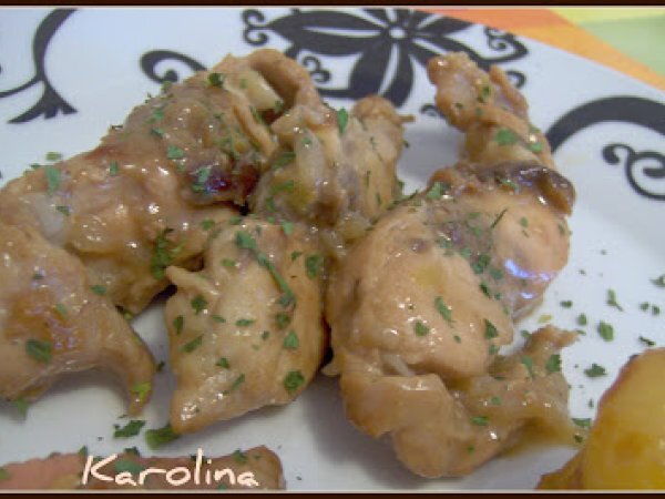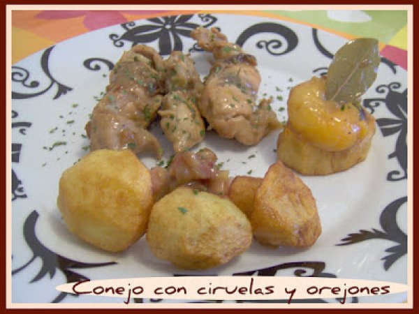 Conejo con ciruelas y orejones con guarnición de papas-seta