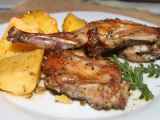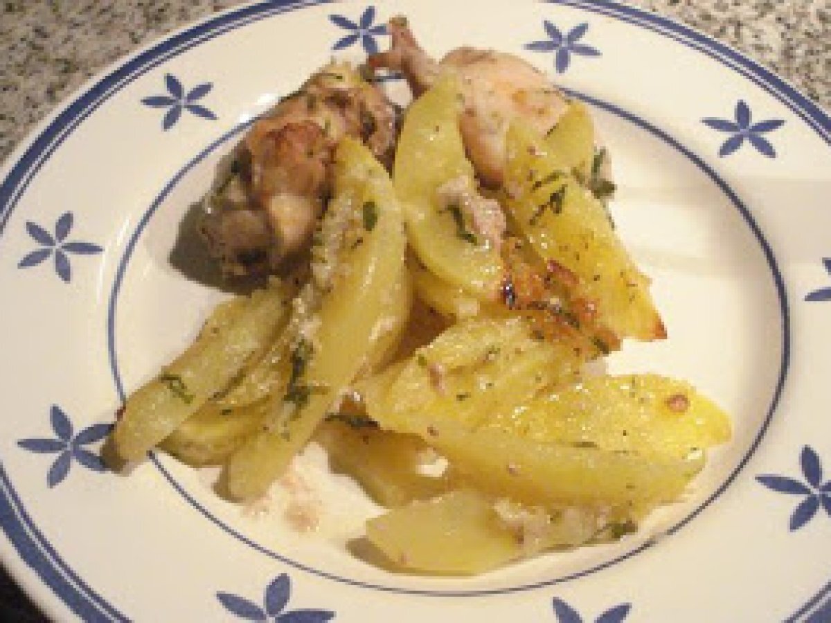 Conejo con patatas al horno y ajo AnteriorSiguiente PlatoFácil1 hora886 Kcal Enviar esta receta a un amigo Imprimir esta página Preguntar al autor Publicar la foto de esta receta Ingredientes 2 1/2 Conejo 4 patatas 1 diente de ajo perejil romero queso de oveja rallado sal pimienta aceite caldo de carne vino blanco pan rallado.