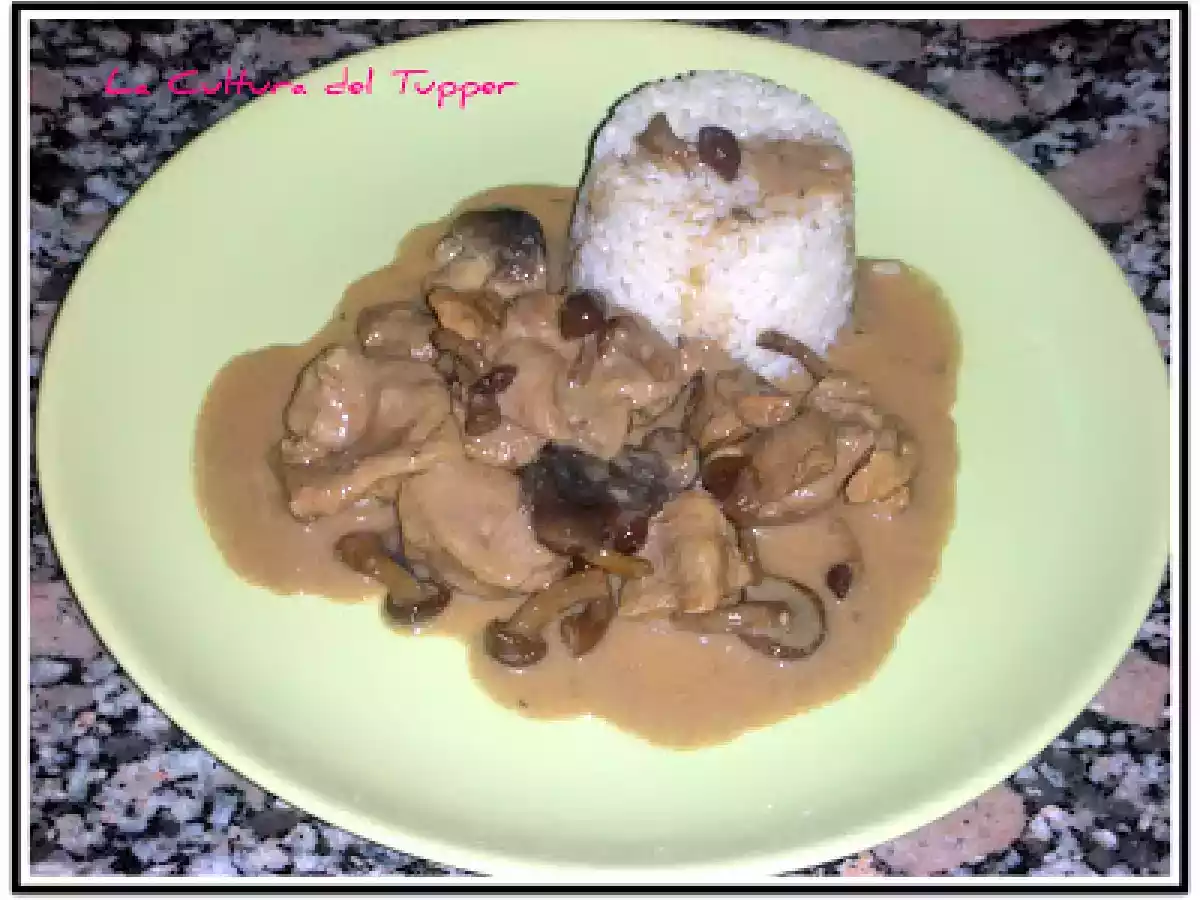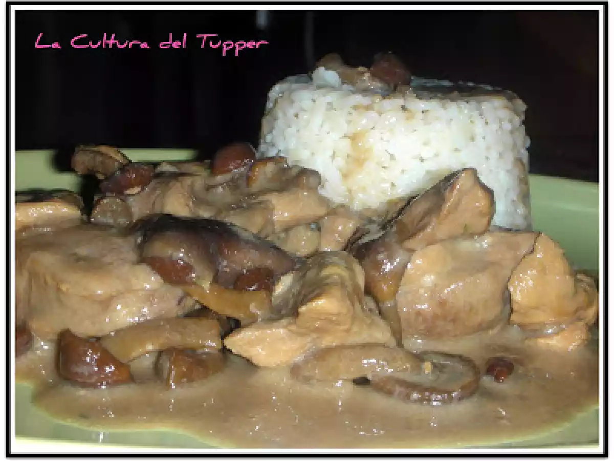 Contramuslos de pollo con setas y salsa al pedro ximenez AnteriorSiguiente PlatoFácil30 min Enviar esta receta a un amigo Imprimir esta página Preguntar al autor Publicar la foto de esta receta Ingredientes 4 4 contramuslos de pollo deshuesados a trozos 200 g de setas en conserva 150 cl de leche 1 cucharada de maizena 1 pizca de romero 1 pizca de tomillo Sal Pimienta 1 vasito de Pedro Ximénez (u otro vino dulce, si no lo encontráis). (PX) Un poco de leche y ajo en polvo para marinar el pollo Aceite de oliva Virgen Extra Arroz hervido (como guarnición)