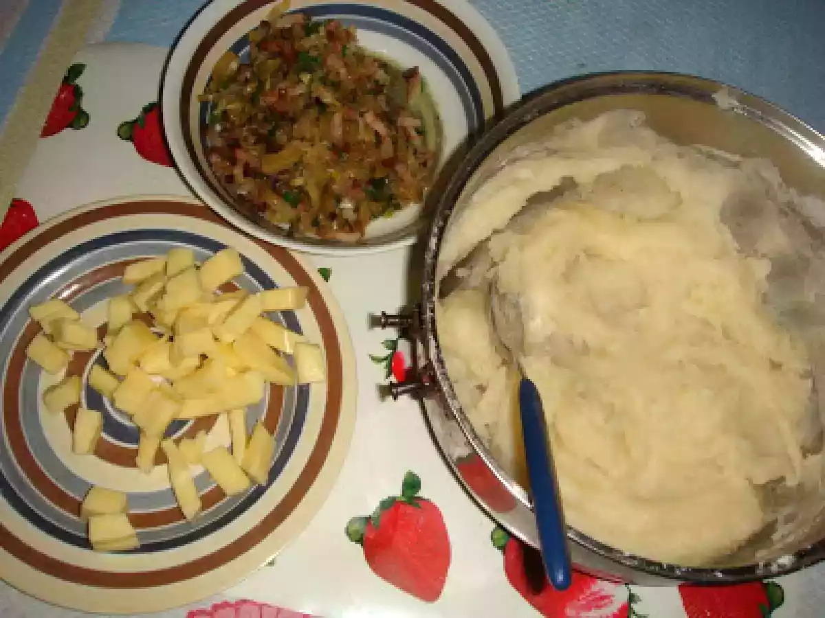 Croquetas de mandioca AnteriorSiguiente PlatoFácil1 hora Enviar esta receta a un amigo Imprimir esta página Preguntar al autor Publicar la foto de esta receta Ingredientes 2 3/4 kg de mandioca 100 g de queso mozzarella (opcional) 100 g de panceta ahumada 1 cebolla 1 cebolla de verdeo 100 g de aceitunas verdes aceite cantidad necesaria 1/2 taza de leche 1 cucharada de manteca 4 cucharadas de harina 4 cucharadas de queso de rallar Sal y Pimienta a gusto.