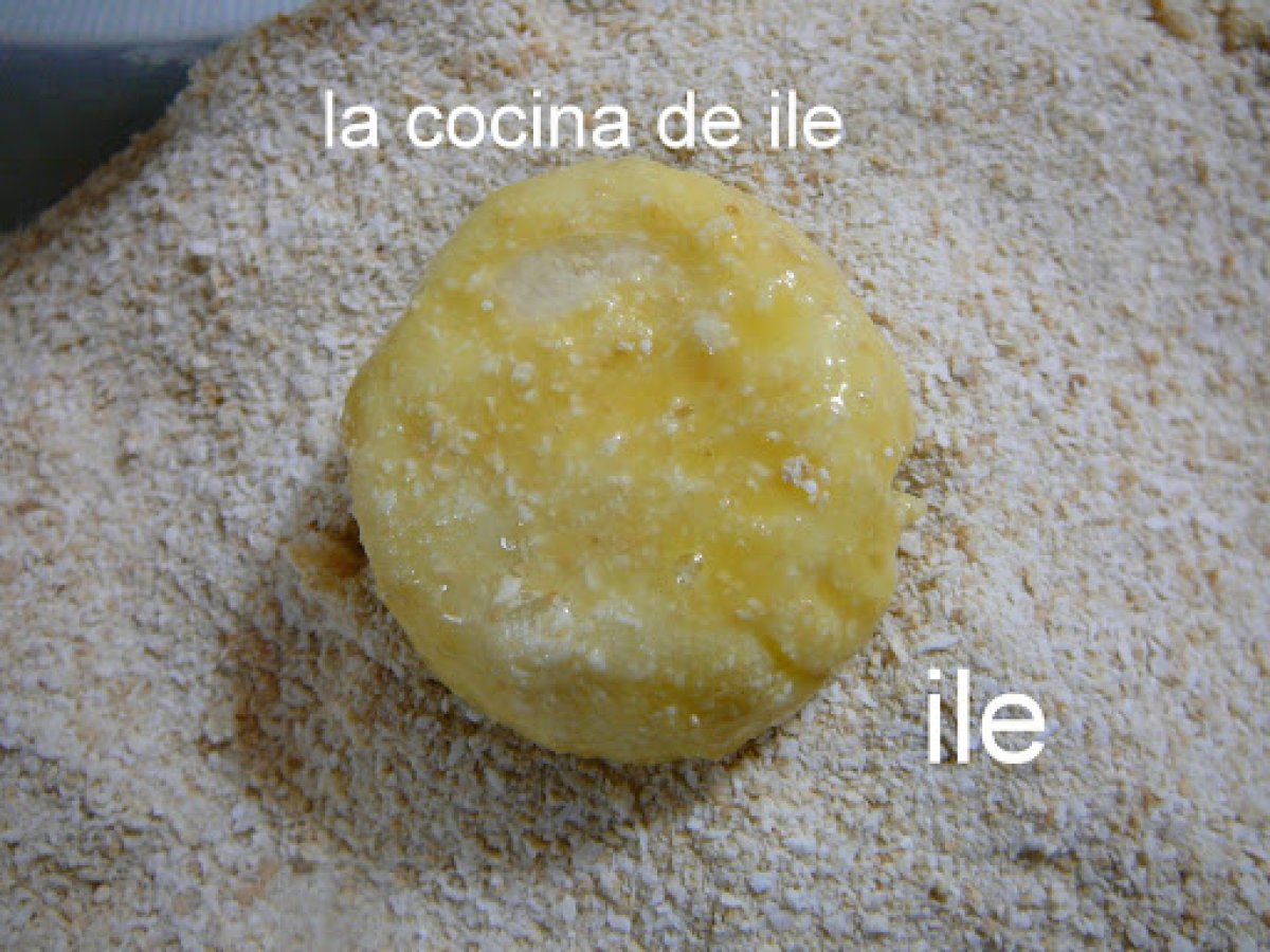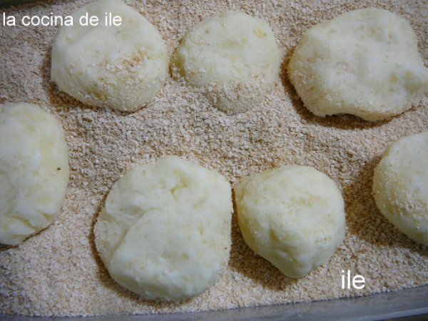 Croquetas de papa con corazón de queso AnteriorSiguiente PlatoFácil2 días 30 m Enviar esta receta a un amigo Imprimir esta página Preguntar al autor Publicar la foto de esta receta Trate de preparar esta deliciosa receta nueva. Ingredientes 4 papas 750 g queso mozzarella o fresco 150 -200 g sal, pimienta y nuez moscada a gusto queso crema 2 cucharadas manteca 50 g huevos 2 pan rallado cantidad necesaria aceite de girasol para freír