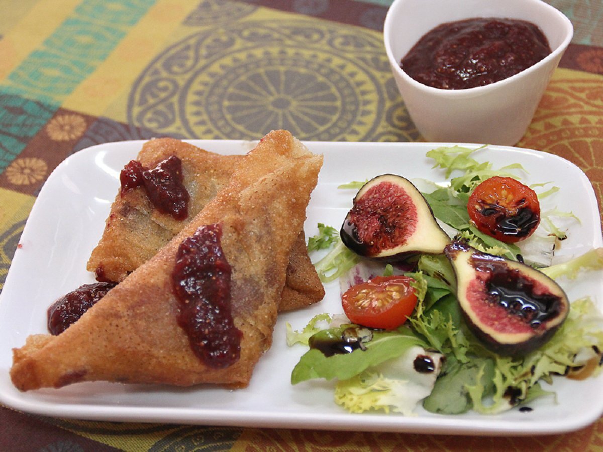 Crujiente de confit de pato con salsa de higos