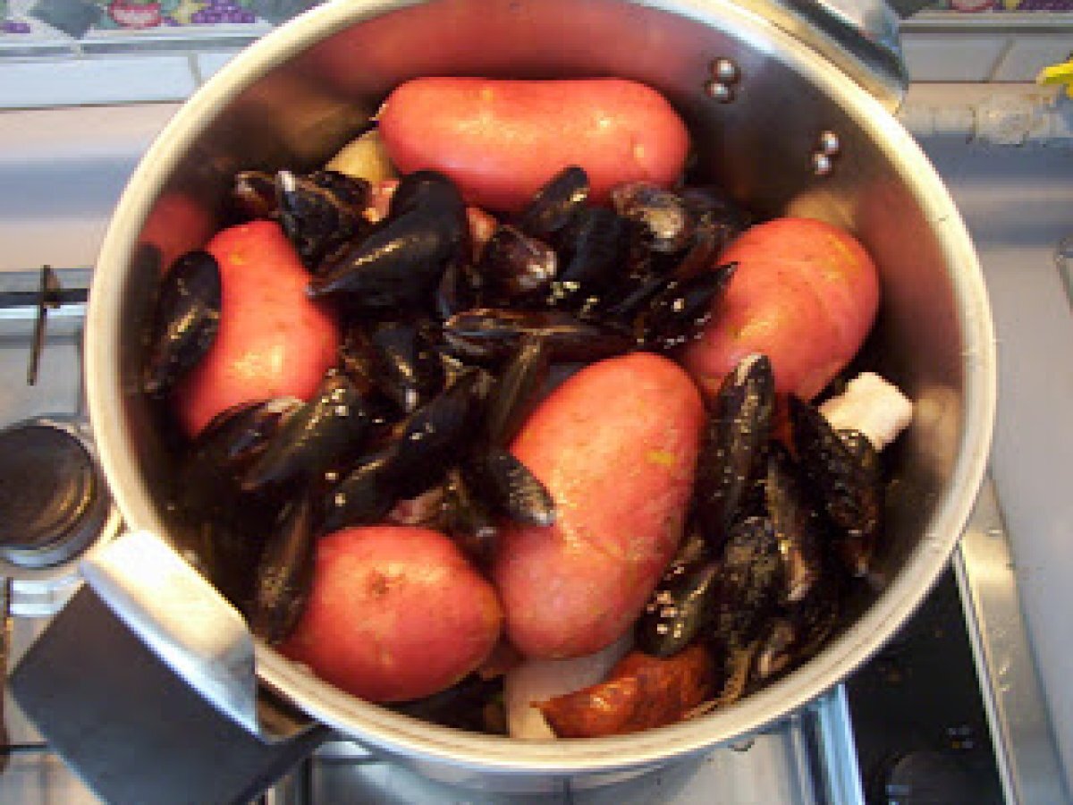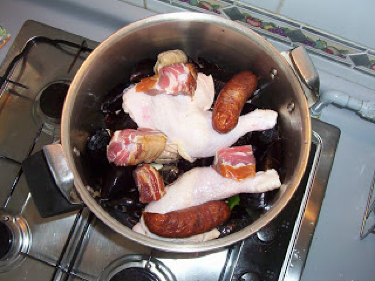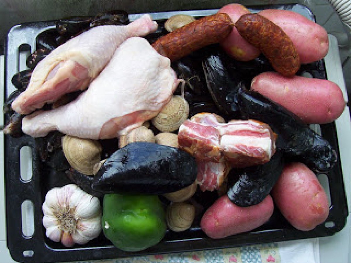 - Limpiar los mariscos usar una olla bastante grande los ingredientes tiene que ponerse abajo verduras seguida mitad de los mariscos, luego la longanizas ,costillar y pollo, finalizas con las papas y el resto de marisco. Rociar con el vino