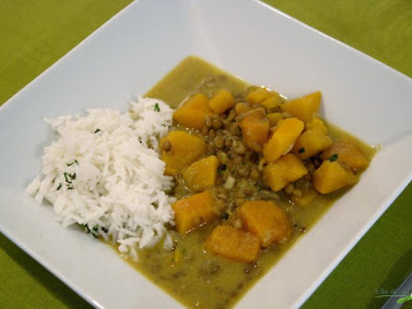 Curry caldoso de lentejas y calabaza AnteriorSiguiente PlatoFácil45 min523 Kcal Enviar esta receta a un amigo Imprimir esta página Preguntar al autor Publicar la foto de esta receta Fabuloso ingreso Ingredientes 2 250 gr de lentejas de Fuerteventura 1 calabaza de Tenerife 1 batata de Tenerife 1 cebolla de Tenerife cilantro fresco de la huerta 1 cucharada de pasta de curry verde 1 cucharada de curry en polvo 1 cucharada de jengibre en polvo 1 bote de leche de coco Costo estimado: 6.51Euros€ (3.25€/porción)