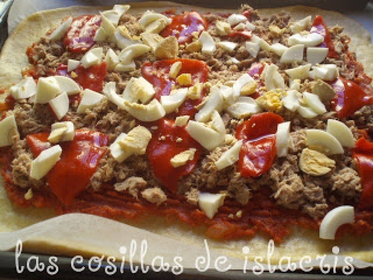 Empanada de atún en escabeche y pimientos del piquillo AnteriorSiguiente PlatoFácil1 h 10 m Enviar esta receta a un amigo Imprimir esta página Preguntar al autor Publicar la foto de esta receta Ingredientes 4 160 ml de aceite de oliva virgen extra 160 ml de agua 15 g de levadura fresca 500 g de harina todo uso 10 g de sal 4 latitas de atún en escabeche 6 pimientos del piquillo 2 huevos cocido 2 latas de tomate triturado de 400 ml 1 cebolla Aceite de oliva virgen estra