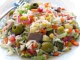 La ensalada de arroz vegetariana es un plato imprescindible cuando llegan los días de primavera y verano. Ligera, muy saludable, sabrosa y colorida es el plato comodín para cuanod no sabemos qué cocinar. Una receta fácil y rápida que podemos variar según las verduras que tengamos por casa. En nuestro caso hemos usado maíz dulce, zanahorias, guisantes y un trocito de queso feta. El resultado: una ensalada perfecta para llevar a la playa, a la montaña, de picnic o al trabajo. Sigue nuestro paso a paso para disfrutar hoy mismo de esta aromática y sabrosa ensalada de arroz. Potete servire l'insalata di riso sui buffet, potete portarla con voi in spiaggia oppure in montagna ma è anche un'ottima idea per un lunch box. Se poi seguite una dieta vegana, vi basterà non aggiungere la feta ed il gioco è fatto. Scoprite il procedimento spiegato passo a passo, provate la nostra profumatissima insalata di riso a casa.