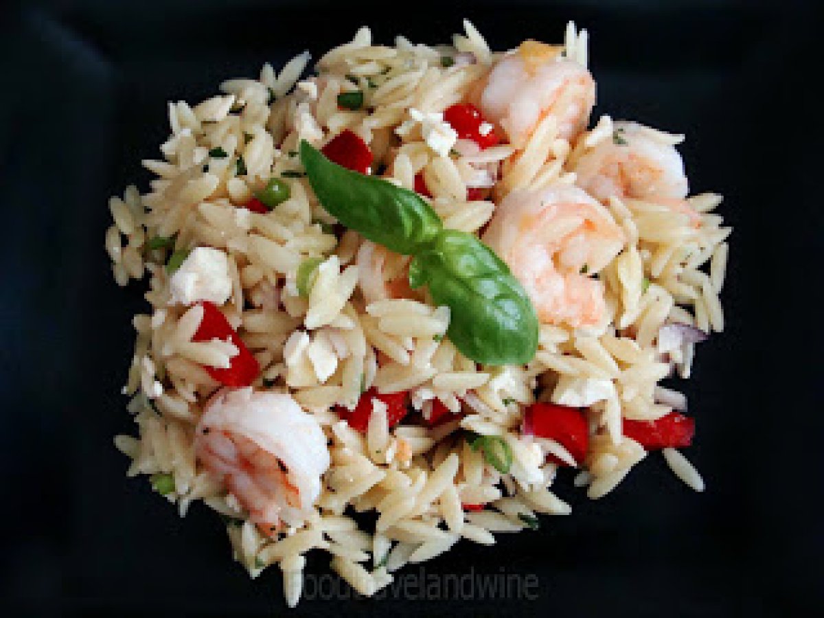Ensalada de camarones, albahaca y orzo ....sabrosa y refrescante para el verano!!! PlatoMedio50 min Enviar esta receta a un amigo Imprimir esta página Preguntar al autor Publicar la foto de esta receta Ingredientes 2 700 gramos de camarones 320 gramos de orzo El jugo de 1 / 2 limón 1 pimiento rojo Albahaca picada 3 cebollines verdes ½ cebolla roja 300 gramos de queso feta en trozos pequeños Pimienta molida Sal de mar Aceite de oliva