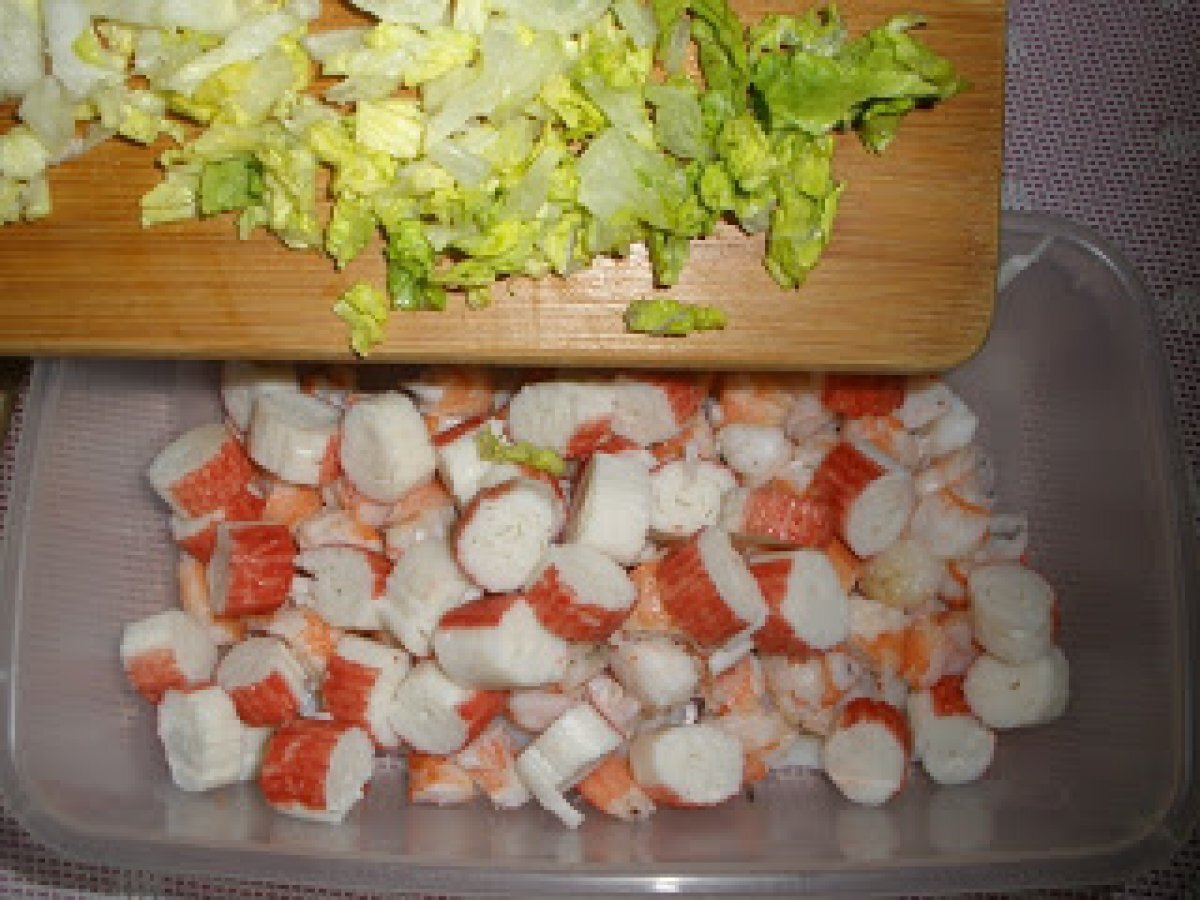 Ensaladilla de marisco AnteriorSiguiente PlatoFácil20 min Enviar esta receta a un amigo Imprimir esta página Preguntar al autor Publicar la foto de esta receta Ingredientes 2 1 jibia (sepia) 5 palitos de cangrejo ó bocas de mar 250 g de langostino cocido (lo venden en el mercadona y sale muy bueno) Mahonesa (pincha aquí para ver la receta de mahonesa casera) 1/2 lechuga 1 huevo duro