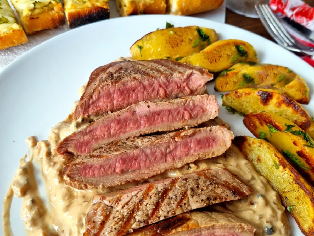 Entrecot con salsa de pimienta verde