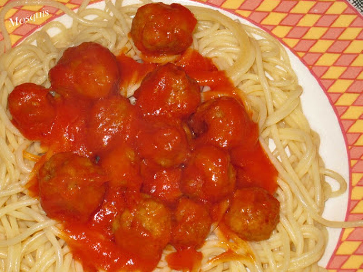 Espaguetis con albóndigas mignon..y otras cosillas AnteriorSiguiente PlatoFácil35 min Enviar esta receta a un amigo Imprimir esta página Preguntar al autor Publicar la foto de esta receta Ingredientes 4 1 paquete de 250 g de espaguetis 350 g de carne de ternera picada aceite de oliva 1 huevo batido sal harina orégano tomillo albahaca pimienta negra molida queso parmesano rallado salsa de tomate