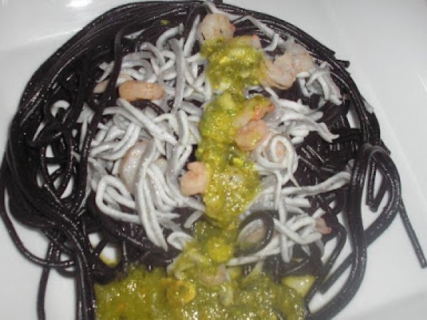Servimos con nuestra salsa de pesto de pistachos por encima o en un cuenquito aparte para que cada uno se sirva como más le guste.