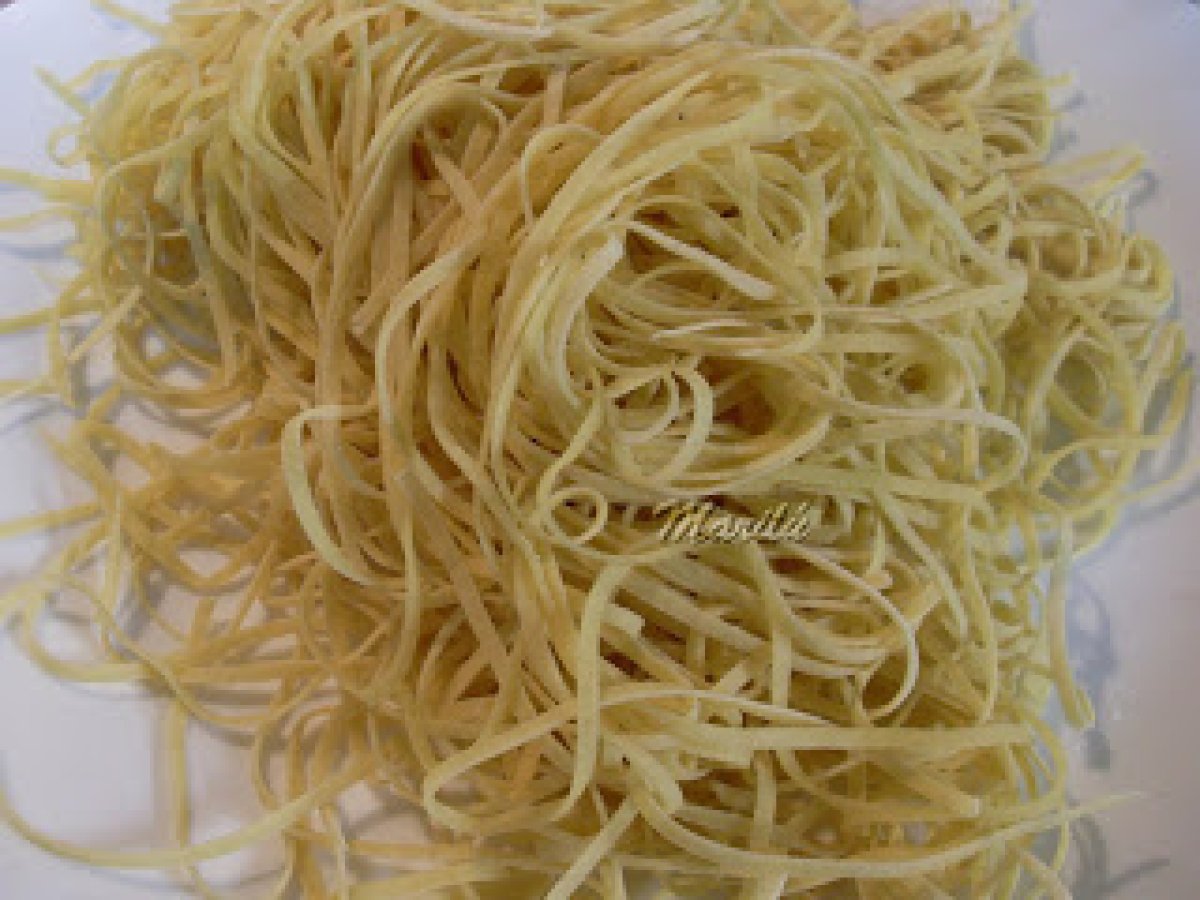 - Una vez conseguido el grosor, vamos a cortarla. Cambiamos los rodillos de amasar por los de cortar,y ahi elejimos si queremos espaguetis,serán las delgaditos o tallarines, que elejiremos uno mas grueso. Nosotros como veis hicimos espaguetis.