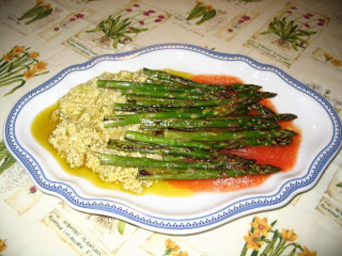 Espárragos a la vinagreta de fresas AnteriorSiguiente PlatoFácil30 min Enviar esta receta a un amigo Imprimir esta página Preguntar al autor Publicar la foto de esta receta Ingredientes 2 8 espárragos verdes frescos (de buen tamaño). 2 huevos. 1 cebolleta tierna. Perejil. 8 fresas. Vinagre de cava. Vinagre de grosella. Aceite virgen extra. Sal. Para la vinagreta de perejil: Un buen manojo de perejil aceite virgen extra 4 cucharadas de agua zumo de ½ limón sal Para la vinagreta de fresa: 8-10 fresas aceite virgen extra 4 cucharadas de vinagre sal