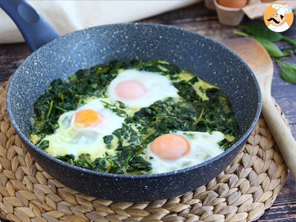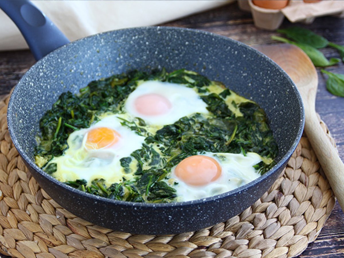 Cocina las espinacas con nata y obtendrás un plato cremoso. Para un resultado más sabroso, añade unos huevos en el último momento. Utiliza una sartén con tapadera para poder conseguir unos huevos esponjosos en las claras y fundidos en las yemas, una verdadera delicia!