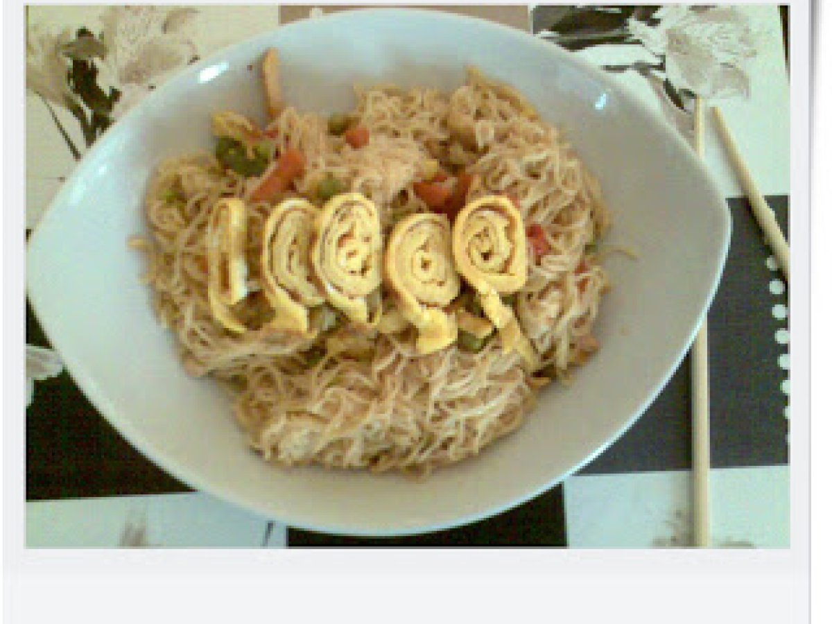 Fideos chinos 3 delicias AnteriorSiguiente PlatoFácil35 min Enviar esta receta a un amigo Imprimir esta página Preguntar al autor Publicar la foto de esta receta Ingredientes 3 140 g de fideos chinos 2 zanahorias medianas 4 coles de bruselas 1 tortilla de 2 huevos cortada en tiras pollo cortado en tiras pimiento verde y rojo cebolla guisantes cocidos salsa de soja brotes de soja aceite de girasol y sal