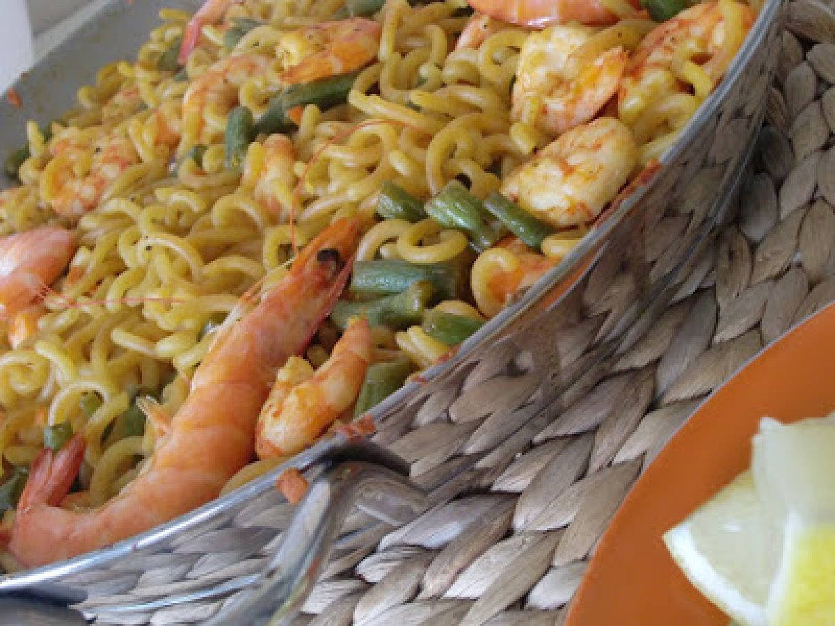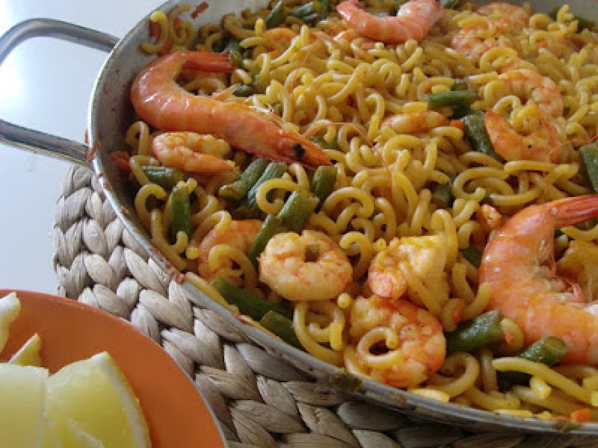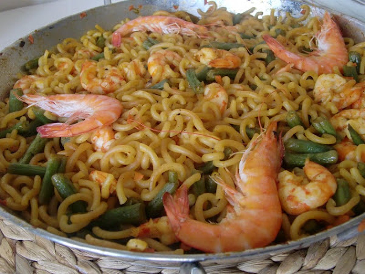 Fideuá de judías verdes y langostinos o la del día de reyes