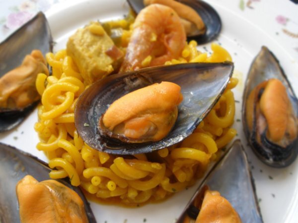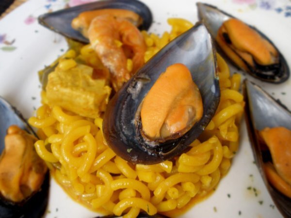 Una fideuà sabrosísima donde el ingrediente principal es el mejillon, acompañado con gambitas y atún.