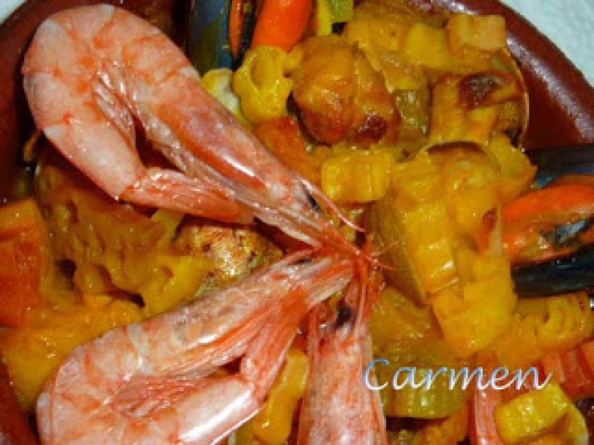 Fideua sin gluten para niños vota ahora AnteriorSiguiente PlatoFácil50 min Enviar esta receta a un amigo Imprimir esta página Preguntar al autor Publicar la foto de esta receta Ingredientes 5 1 puñado por persona de fideos de animales marca Organ 125 g de gamba arrocera 125 g rabas de calamar 125 g mejillones 125 g chirlas 2 contramuslos de pollo de corral 1 cebolla 3 dientes de ajo Colorante carmencita 2 cc tomate frito 125 g sofrito 600 ml agua