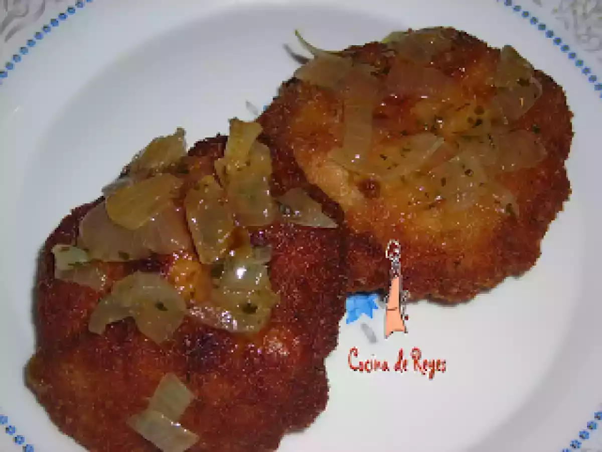- Mezclamos todo bien.Cuando este todo bien mezclado, se va haciendo bolas y la aplastamos con la mano que queden tipo hamburguesas. Se pasa por el pan rallado y se fríen en aceite caliente.