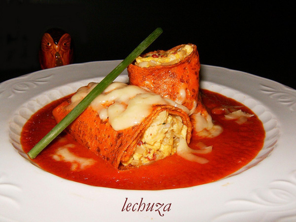 Filloas rojas (de piquillo) rellenas de bacalao AnteriorSiguiente PlatoMedio45 min807 Kcal Enviar esta receta a un amigo Imprimir esta página Preguntar al autor Publicar la foto de esta receta Ingredientes 4 Para las filloas: 1 litro de caldo de cocer: una punta de lacón y huesos de espinazo 4 huevos 300 grs. harina de trigo (aprox.) 1 frasco de pimientos del piquillo ( 200 grs.) 1 trocito de tocino ibérico Para el relleno: 2 pimientos del piquillo 2 huevos 400 grs. bacalao desalado 1 cebolla perejil Para la salsa: 1 frasco de pimientos del piquillo ( 200 grs.) 2 cucharadas de tomate frito 2 dientes de ajo 1 chorrito de nata líquida Queso para gratinar Costo estimado: 12.8Euros€ (3.2€/porción)