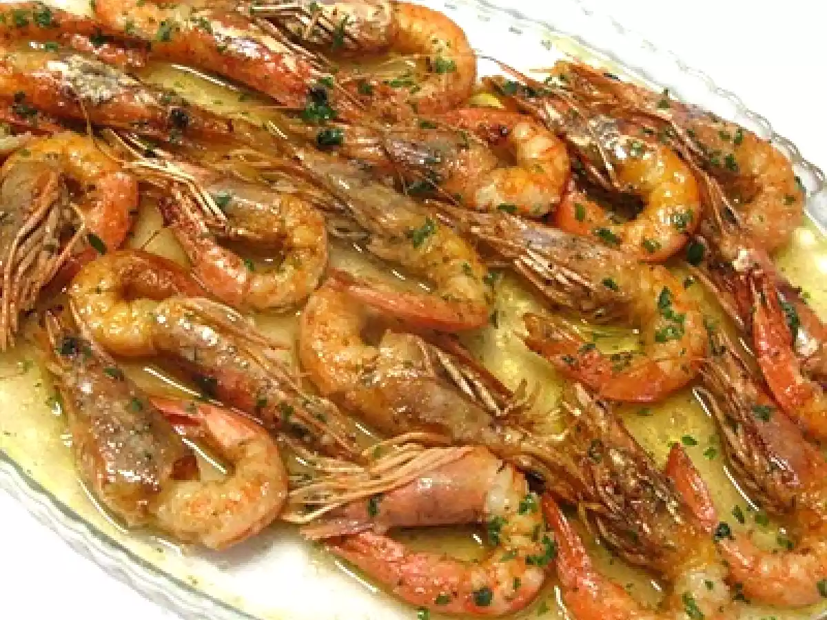 Gambas al horno PlatoFácil25 min260 Kcal Enviar esta receta a un amigo Imprimir esta página Preguntar al autor Publicar la foto de esta receta Ingredientes 6 1500 g de langostinos (o gambas) frescos (o congelados) ajo deshidratado cayena en polvo (con moderación) sal y pimienta blanca aceite (lo suficiente para engrasar el fondo de la bandeja) un buen chorro de Oporto o Pedro Ximenez (esta vez he puesto Oloroso) Costo estimado: 25.37Euros€ (4.23€/porción)
