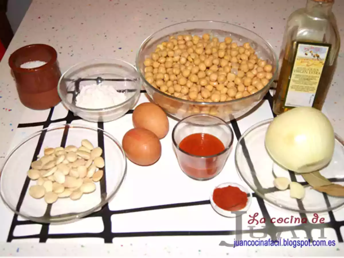 Garbanzos con huevos duros y almendras AnteriorSiguiente PlatoMedio1 h 45 m718 Kcal Enviar esta receta a un amigo Imprimir esta página Preguntar al autor Publicar la foto de esta receta Receta del centro de España. Ingredientes 2 1/2 Kg. de garbanzos 50 gr. de almendras 2 huevos duros 1 cebolla 2 dientes de ajos 2 hojas de laurel 1 cucharada de pimentón 1 cucharada de harina 2 cucharaditas de tomate frito Sal Aceite Costo estimado: 4.46Euros€ (2.23€/porción)