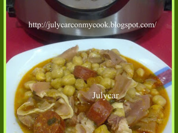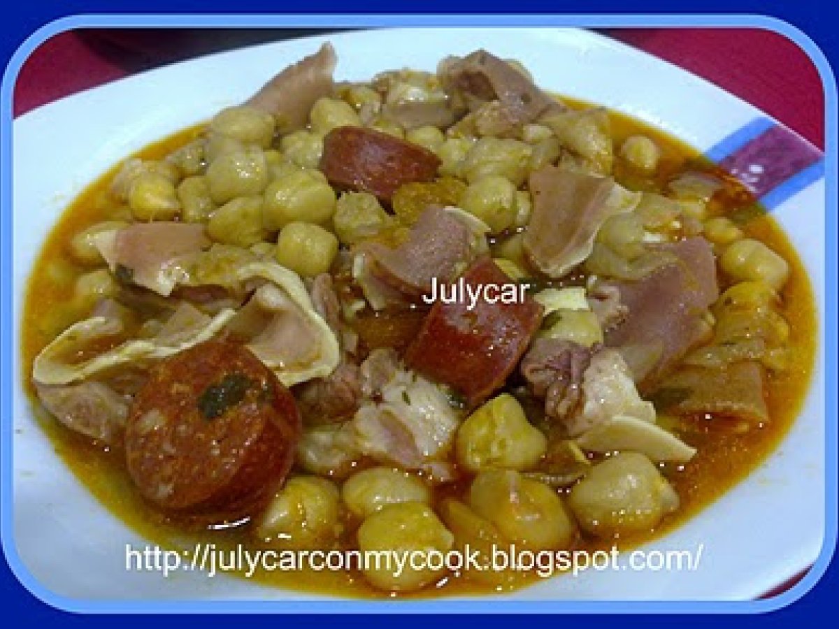 Garbanzos con oreja y chorizo olla gm d AnteriorSiguiente PlatoFácil30 min Enviar esta receta a un amigo Imprimir esta página Preguntar al autor Publicar la foto de esta receta Ingredientes 2 garbanzos lechosos oreja adobada rodajas de chorizo cebolla ñora picada (la venden en mercadona y grandes superficies) hueso de espinazo 1 tomate natural pelado ajo albahaca ó perejil sal aceite hoja de laurel cacito knorr verduras agua para cubrir