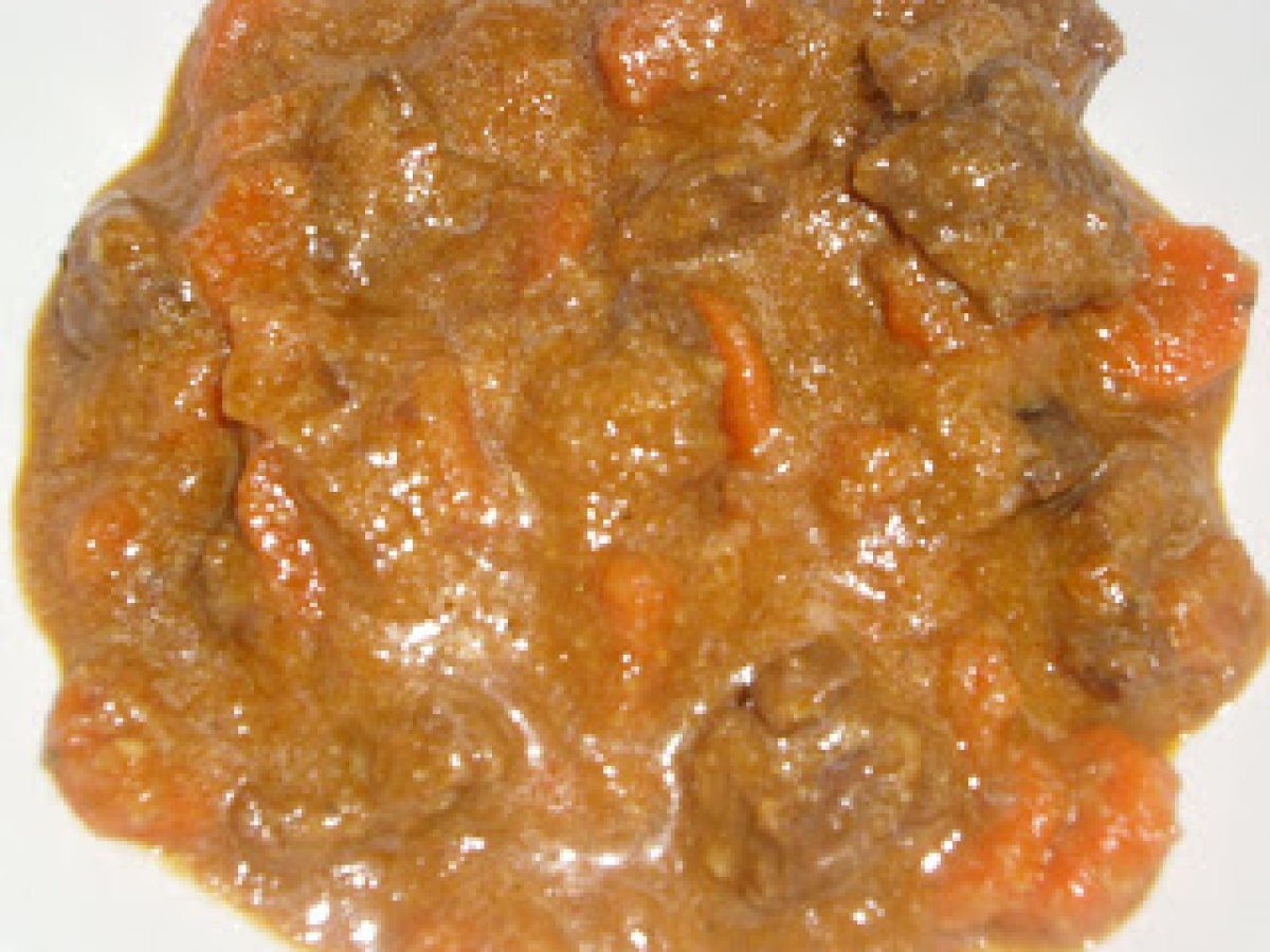- Retirar los trozos de carne y rodajas de zanahorias no todas,o sí a gusto y triturar la salsa.