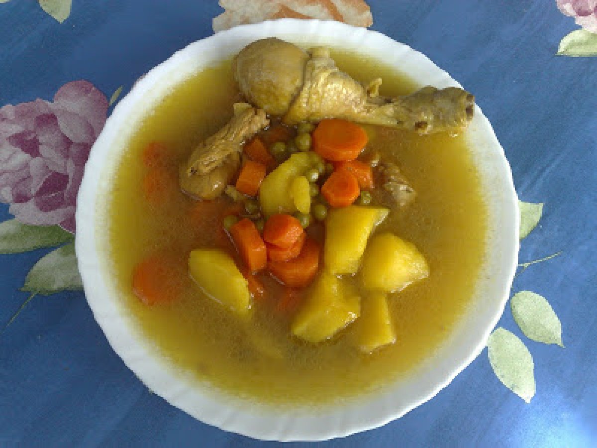 Guisillo PlatoFácil45 min283 Kcal Enviar esta receta a un amigo Imprimir esta página Preguntar al autor Publicar la foto de esta receta Probar el pollo con vegetales. Ingredientes 4 Pollo o costilla de cerdo cebolla ajos pimiento tomate zanahorias guisantes alcachofas patatas aceite vino laurel azafrán agua y sal