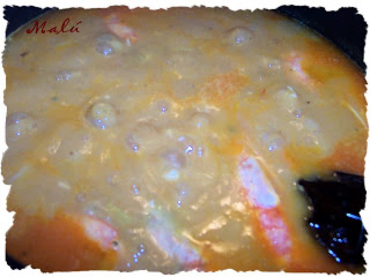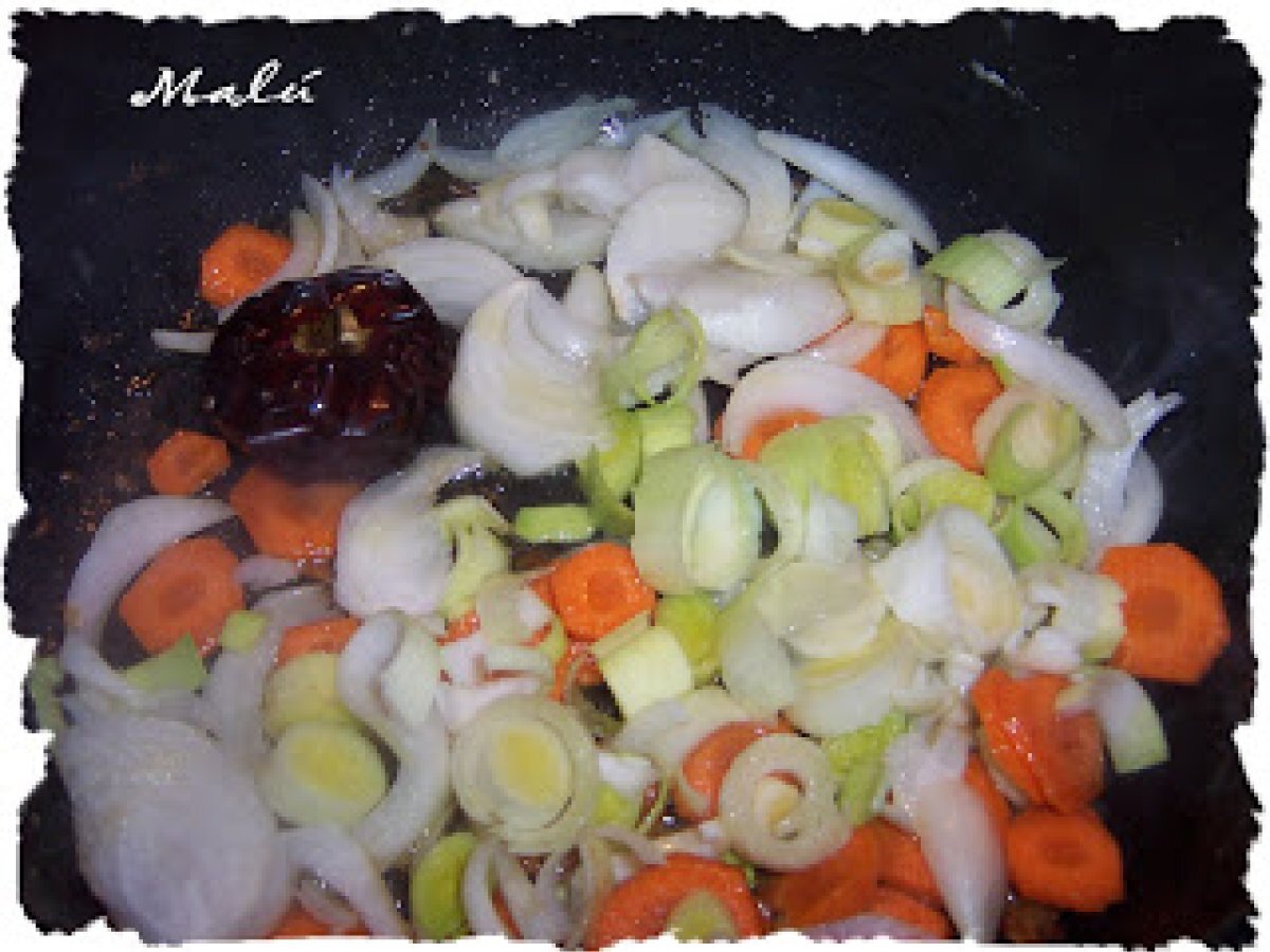 Guiso de abadejo ( paso a paso ) AnteriorSiguiente PlatoFácil30 min Enviar esta receta a un amigo Imprimir esta página Preguntar al autor Publicar la foto de esta receta Ingredientes 4 8 filetes de abadejo 8 gambas 1 puerro 1 cebolla 1 zanahoria 1 pimiento ñora 4 cucharadas de tomate triturado Ajo y perejil 1 cucharada de pimentón dulce Alubias blancas hervidas 6 patatas Harina 1 litro y medio de agua. Costo estimado: 13.87Euros€ (3.47€/porción)