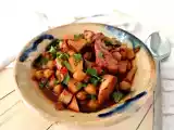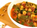 Guiso de garbanzos con chorizo PlatoFácil30 min309 Kcal Enviar esta receta a un amigo Imprimir esta página Preguntar al autor Publicar la foto de esta receta Ingredientes 2 Garbanzos patatas Fuentesaúco salchicha cebolla puerro pimiento verde unos tomates pelados verduras Costo estimado: 2.37Euros€ (1.19€/porción)