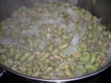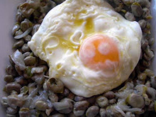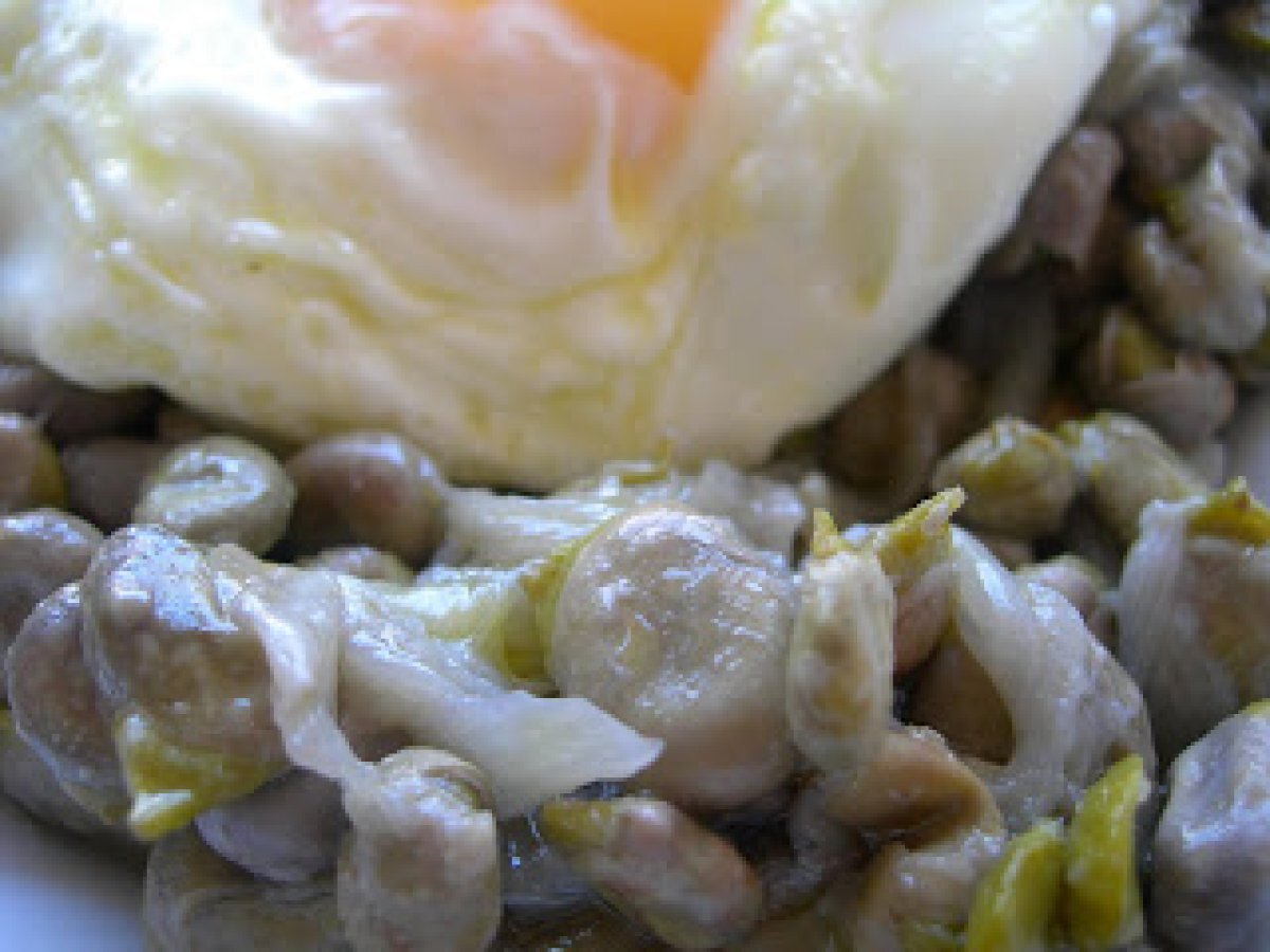 Habas con cebolleta y huevo AnteriorSiguiente PlatoFácil50 min146 Kcal Enviar esta receta a un amigo Imprimir esta página Preguntar al autor Publicar la foto de esta receta Receta, al estilo de Jaén, muy pero que muy fácil. Ingredientes 2 Habas verdes Cebolletas Aceite de oliva Una pizca de sal Huevos Costo estimado: 0.46Euros€ (0.23€/porción)