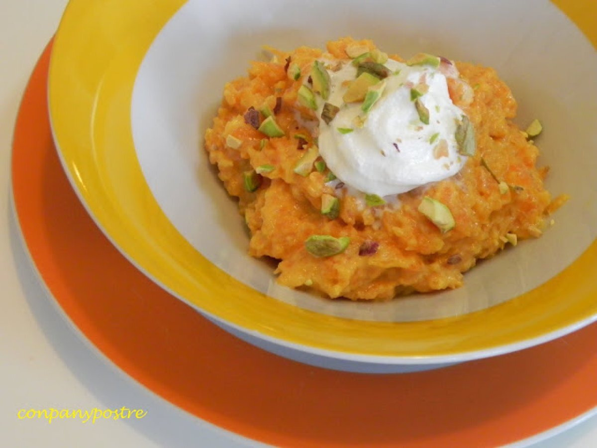 Halva de zanahorias AnteriorSiguiente PlatoFácil45 min Enviar esta receta a un amigo Imprimir esta página Preguntar al autor Publicar la foto de esta receta Ingredientes 1 500 g de zanahorias peladas y ralladas gruesa 1 litro y 200 ml de leche entera 1 palo de canela 2 cardamomos 40 g de pasas de corinto unas hebras de azafrán diluidas en una cucharada de agua caliente 1 cucharada de miel 40 g de mantequilla azúcar